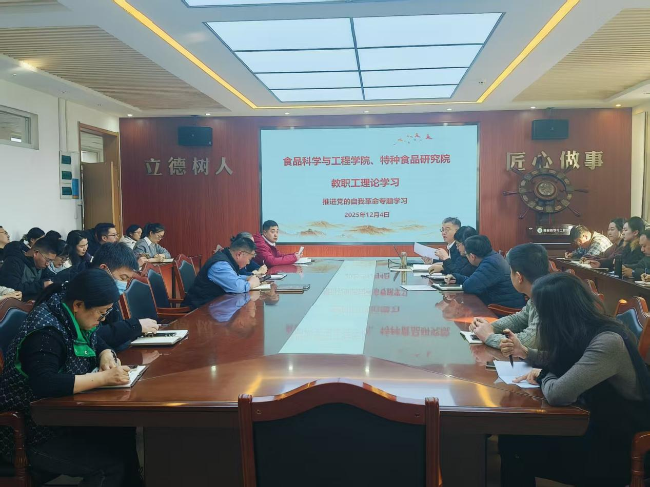 12月4日,英国365集团,365英国官方、特种食品研究院召开全体教职工理论学习会议,围绕推进党的自我革命进行专题学习,会议由学院党委书记车广杰主持,全体教职工参加。