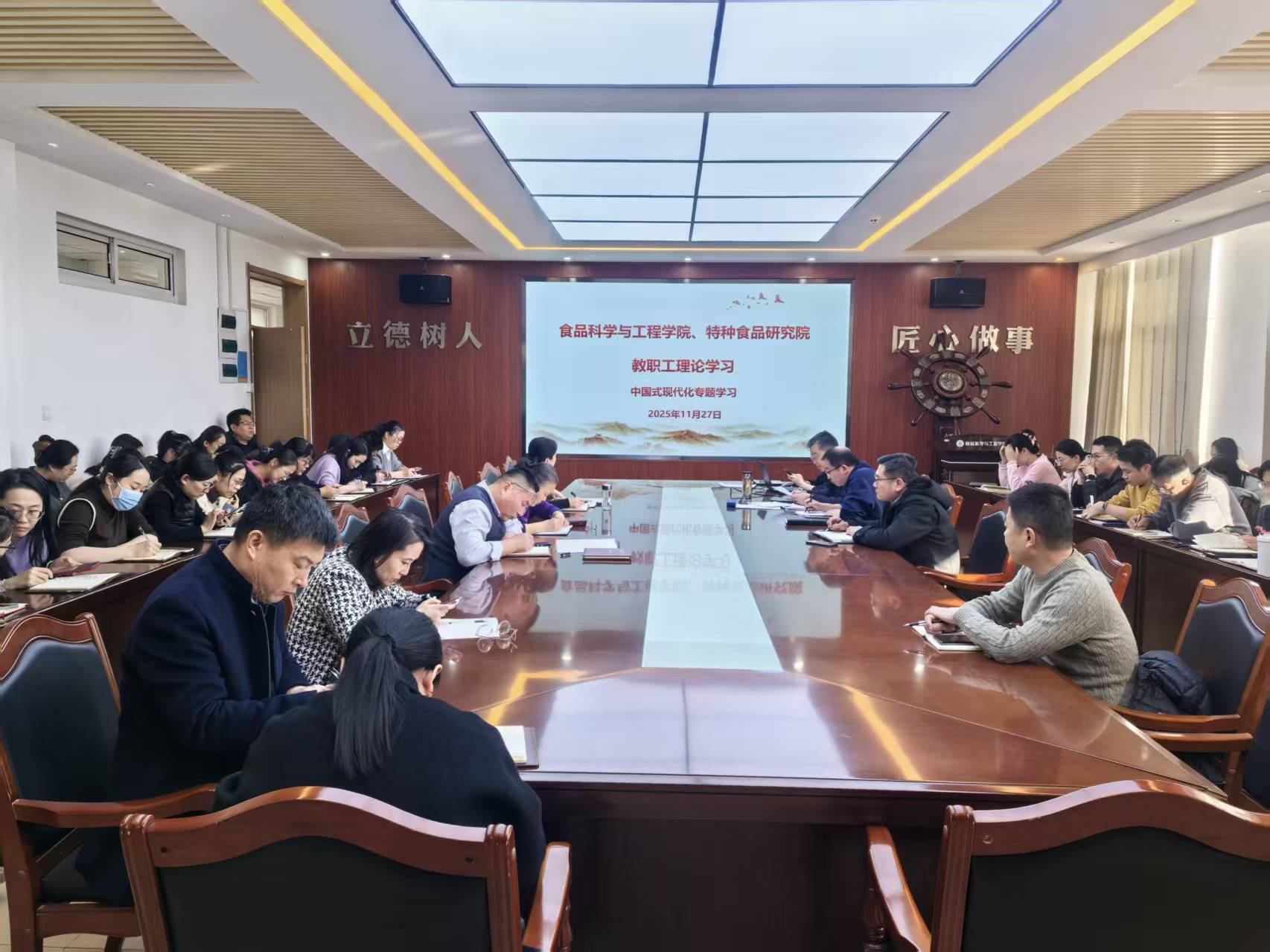 11月27日,英国365集团,365英国官方、特种食品研究院召开全体教职工理论学习会议,围绕中国式现代化进行专题学习,会议由学院党委书记车广杰主持,全体教职工参加。
