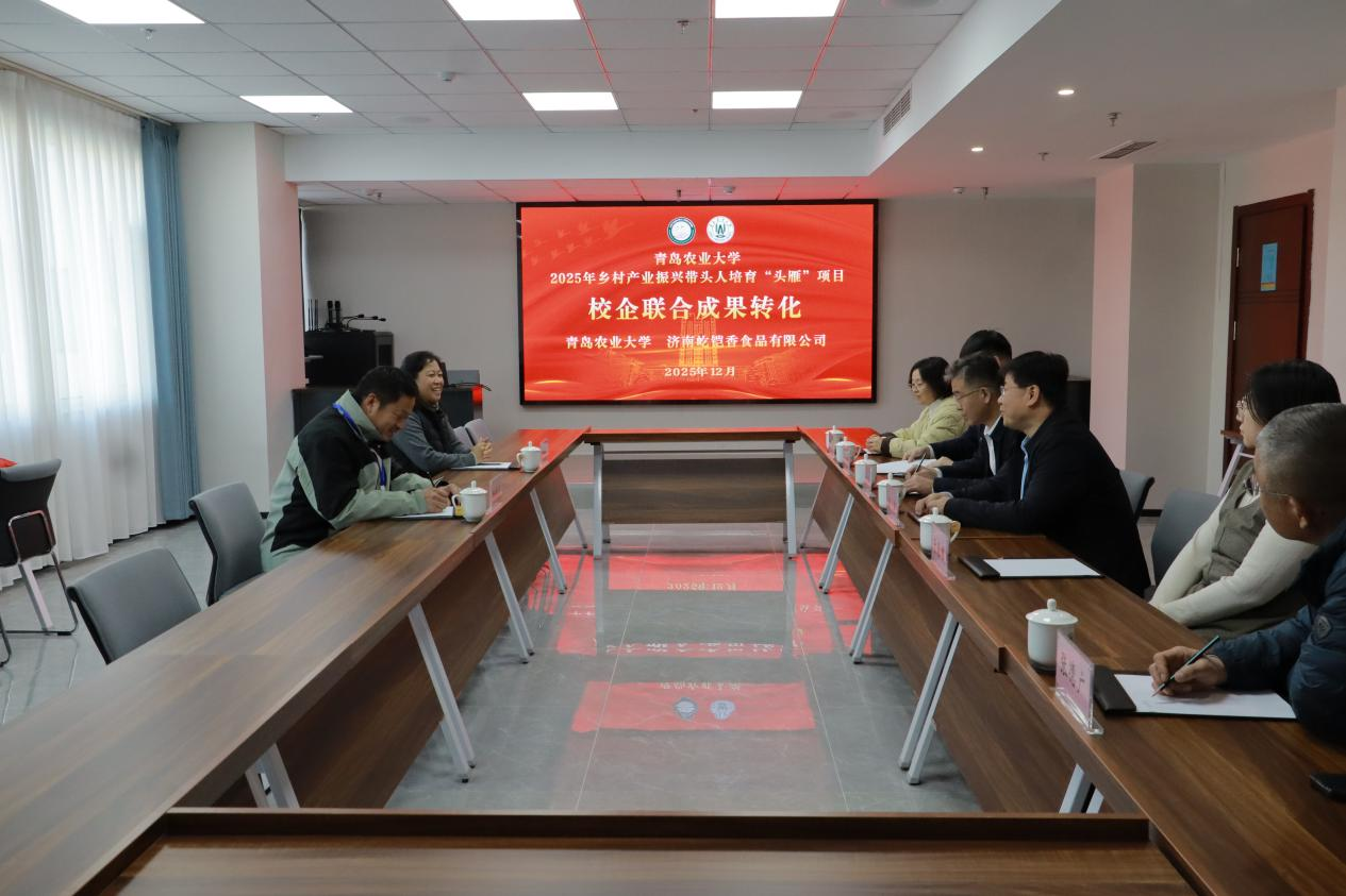 12月12日,青岛农业大学英国365集团,365英国官方在博学楼举行2025年乡村产业振兴带头人培养“头雁”项目校企合作成果转化交流活动。英国365集团,365英国官方党委书记车广杰,继续教育学院院长潘军、副院长郝伟、培训中心主任张德广,英国365集团,365英国官方慕鸿雁副教授、于春娣老师,以及济南屹铠香食品有限公司法人代表、执行董事兼总经理吕玉珍、监事杨春青共同出席。