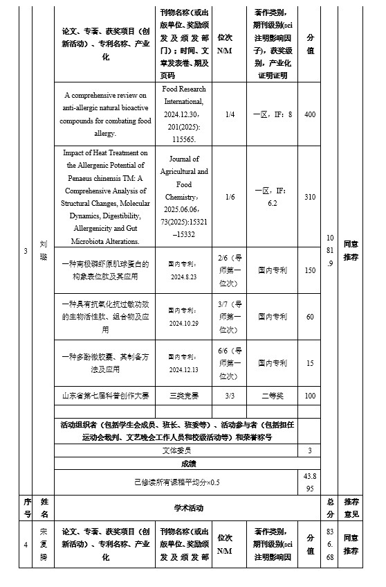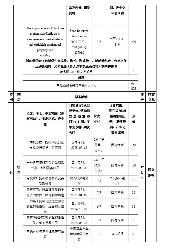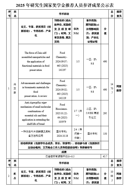 经个人申请、学院评选等程序,现将2025年研究生国家奖学金推荐名单公示如下: