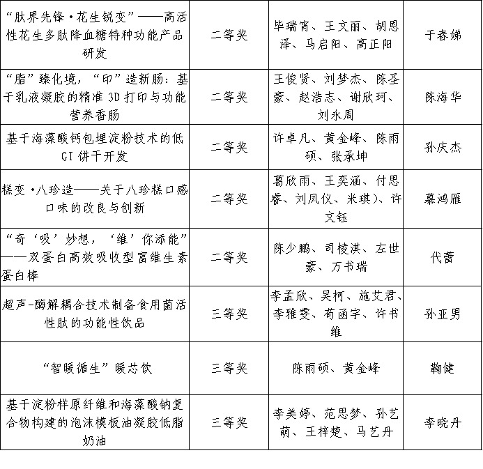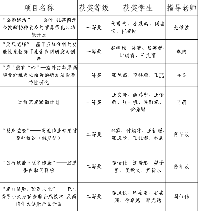 为鼓励我校大学生勇于创新、善于创新,激发创造潜能和学习热情,加强大学生的实践能力与合作精神,提升大学生的综合素质,2025年9月23日至12月初,青岛农业大学举办第四届特种食品开发创新创业大赛。本次大赛共213名学生参加,经作品初审、终审阶段,评审专家从科学性、创新创意性和可行性等方面对各参赛队作品进行了综合评定,大赛最终评选出一等奖4项、二等奖8项、三等奖11项。